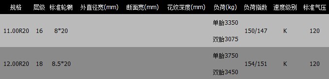 轮胎特点:高强度的带束及新型胎面成份技术提高轮胎耐久性,“之”字形花纹设计,保持良好牵引力,新型成份优化,有效提升轮胎耐久性能。