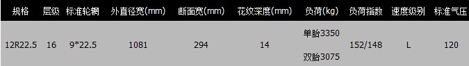 轮胎特点:水纹形状的花纹设计,提升耐磨性能,加强型胎面结构,提高行驶稳定性,双层胎面结构,有效提升胎面翻新性能